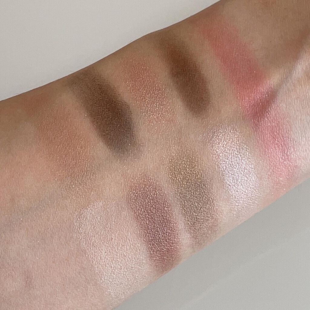 ずっと気になっていて先行発売で購入しました。 ゴールド色と言った方がいいくらいのラメ その中にシルバーのラメが煌めく色です。 深みのあるブラウンに近いピンク。 写真ではわかりにくいですが、 ピンクのラメが入っているのです💓 どちらも色が濃いので、少しずつのせるのが良いかと思います。 選ぶ色やのせる量によって仕上がりがかなり 変わるような気がします。 今回はゴールドラメを多めにしたので、 ゴールド感が強めの仕上がりになりました。 どちらも暗めの色ですが、華やかな雰囲気になると思います。 秋冬っぽくてとても気に入りました😍