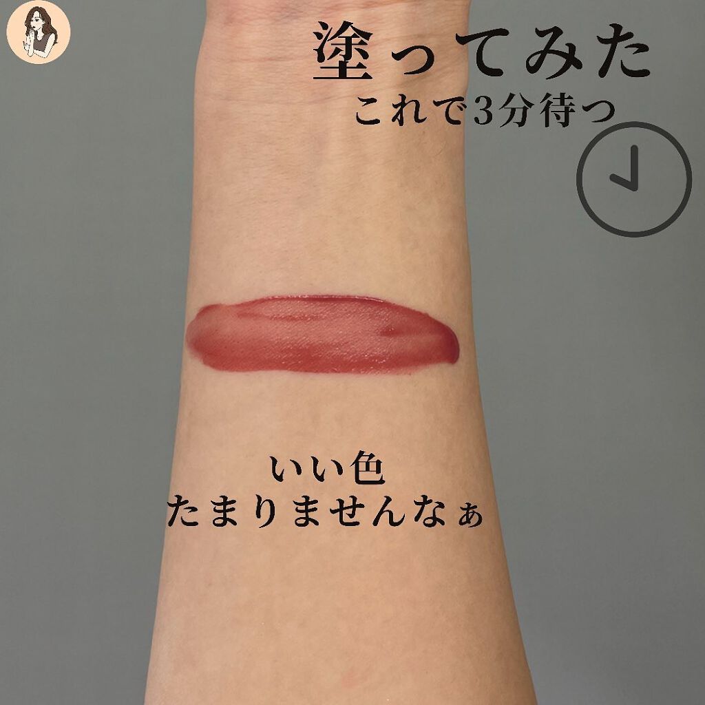 発色は申し分なしでおしゃんカラーにきゅん。 おすすめの塗り方はリップを塗ったら「2分待って」ティッシュオフする ちゃんと唇に定着させる時間をあげることでぐっとマスクに着きにくくなる! でも、やっぱり直で塗ると乾燥する😢かといってリップ下地を塗ってから塗ると色持ちがうーん。