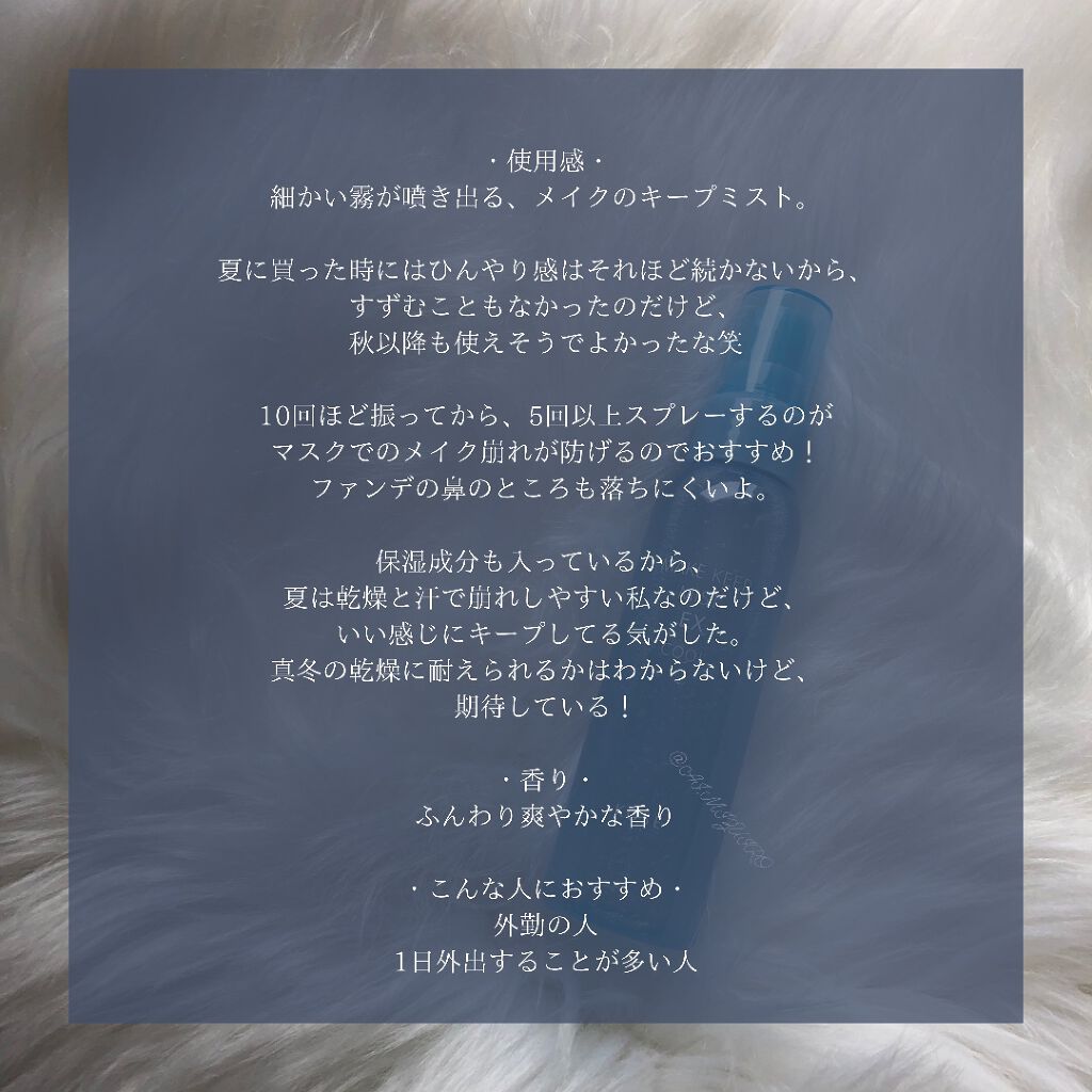 | フィックスミストランキング第1位 | ベースの崩れが皮脂より乾燥からくる人に特にオススメ✨ サラッとというより、しっとりツヤ肌感 | 詳細を見る | |