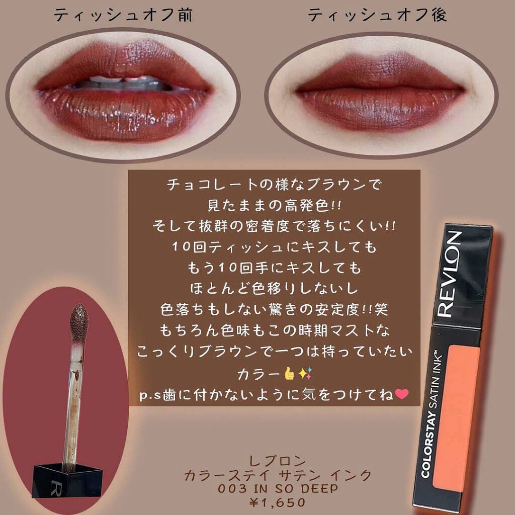 - ・ 16時間*1、落ちにくい! 独自のフレキシブル カラー フィルム テクノロジー採用。 フィルムのように唇を包み、唇の動きと一体化して、落ちにくい。 ・ 色移りしにくい、自然なほのツヤ! 唇にとけ込むようになじみ、なめらかにフィット。 マットとツヤの間の絶妙な、ほんのりツヤ感。 ・ うるおい続き、パサつかない! 保湿成分 ブラック カラント シード オイル*2 & ビタミンE誘導体*3配合。 ピタッと密着するのに、快適なつけ心地。 ・ ほんのりフルーティフローラルの香り *1 レブロン研究所調べ(個人差がでる場合があります)*2 クロフサスグリ種子油 *3 酢酸トコフェロール