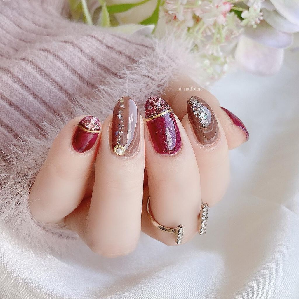秋になるとやりたくなるブラウンネイル フレンチラインは金箔を使いました✿ キャンメイク (@canmaketokyo ) ・チャイティーラテ ネイルホリック (@nailholic_kose ) ・BR307