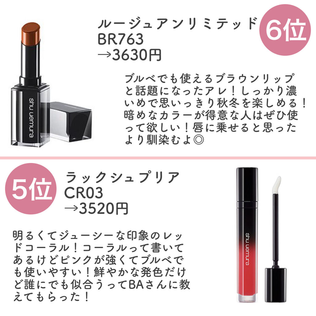 | 口紅・グロス・リップライナーランキング第110位 | 今トレンドのちゅるんと透けるような 軽めなツヤリップで毎日使いやすい質感👌🏻 | 詳細を見る | |