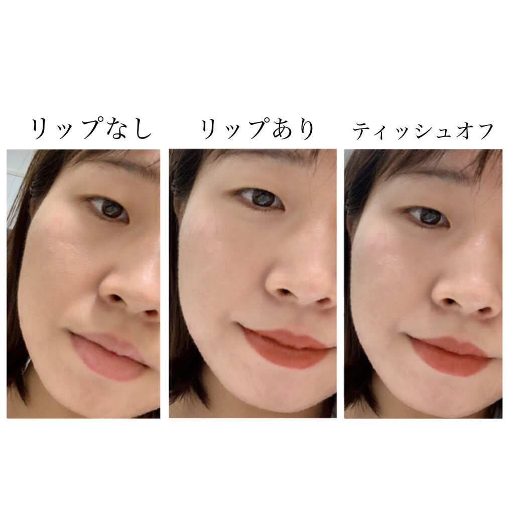 | 塗りたては結構ツヤツヤしてますが唇に塗るとマットに変身!! マットすぎず、グロスのようにツヤツヤし過ぎず使いやすい仕上がりでした👏 | 詳細を見る |