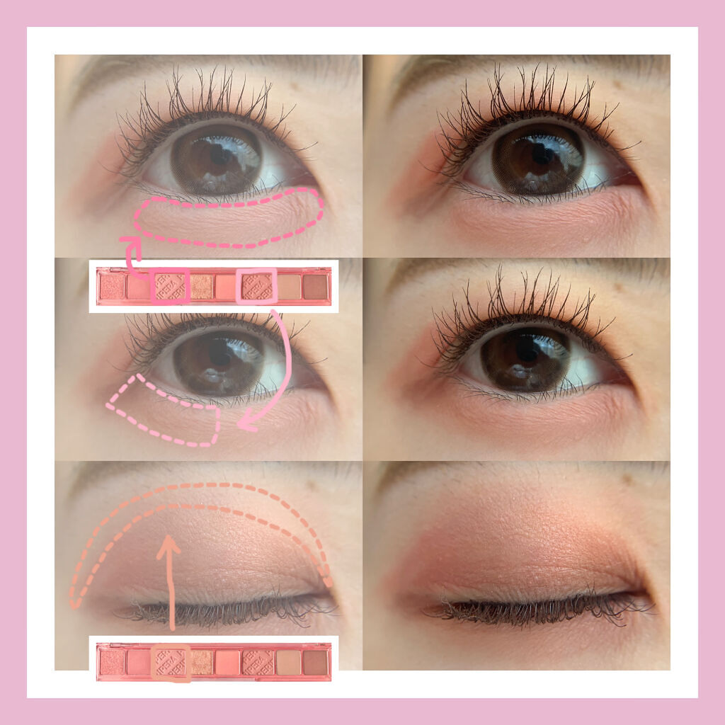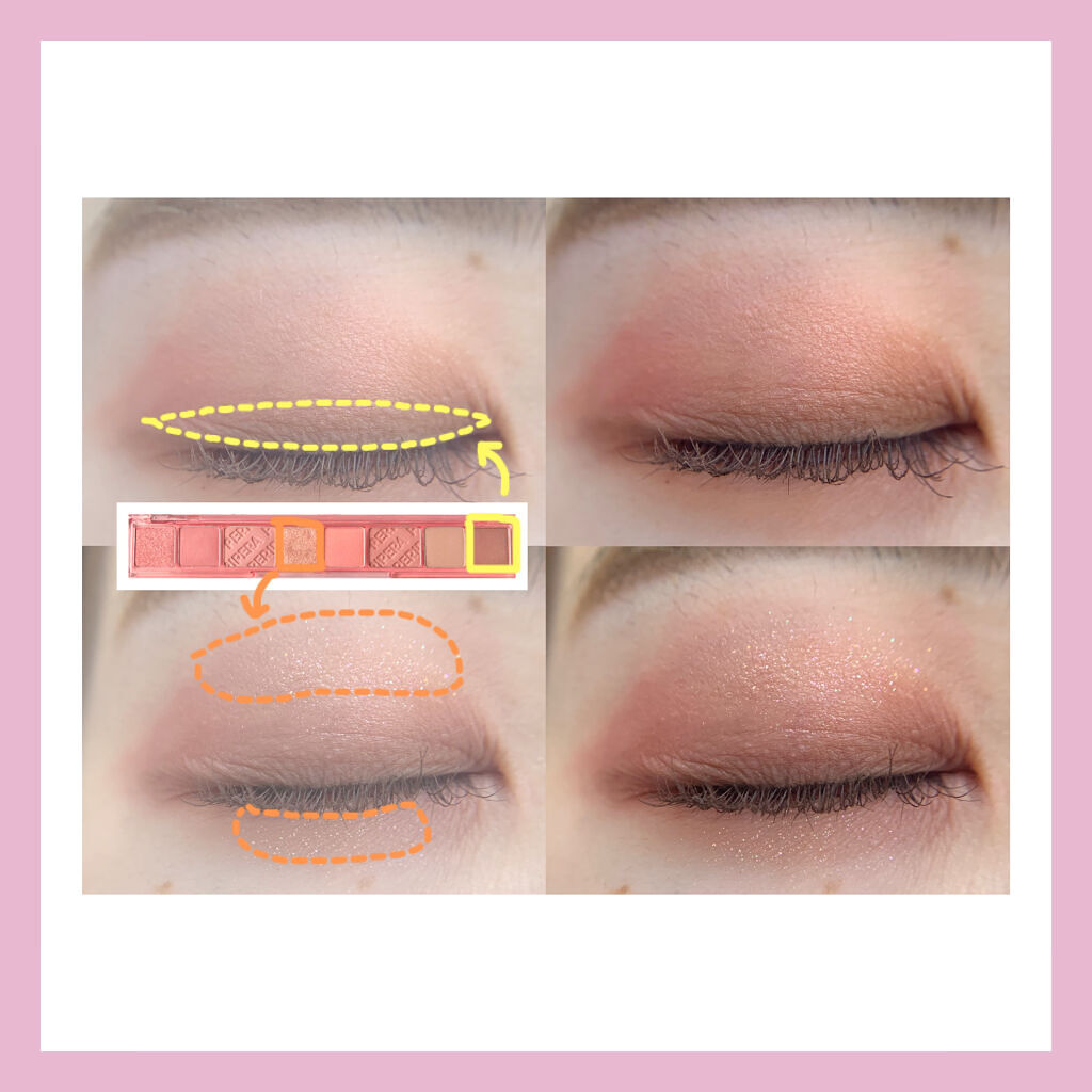 EGLIPSのリトルサンシャインはオレンジパレット界の王さまだと思っています👑 エクセルのピーチメルバは細かいラメがぎっしりで薄づきなので、ベースのすぐ後に全体に塗ってあげると一気に目がオレンジを受け入れられます🧡 最後にのせたBR416はゴールドとレッドのパールがすごく綺麗なので、ピーチメルバとの相性が抜群!