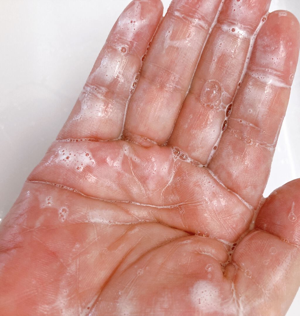 その理由は、しっとりとした洗い上がり💞 ハンドソープってどうしても手指が乾燥しがちだと 思うのですが、「クリーンハンズ ナンバーワン」は まったくかさつかず、 寧ろなめらかに潤っている感じがします😌 オーストラリア産の コールドプレス ヘンプシードオイルが 配合されているから洗い上がりも しっとり柔らかな肌を保てるんだと思います✨ 香りは甘すぎず、リフレッシュできる爽やかな ボタニカルハーブの香りです🌿 すーっとした清涼感があり、ユーカリやペパーミント、 ゼラニウム、ラベンダーが配合されています☺️ 現品ボトルの赤と青のボーダーもポップでかわいい❣️ 洗面所に置いておくだけで 一歩おしゃれな空間に近づけそうです🥰