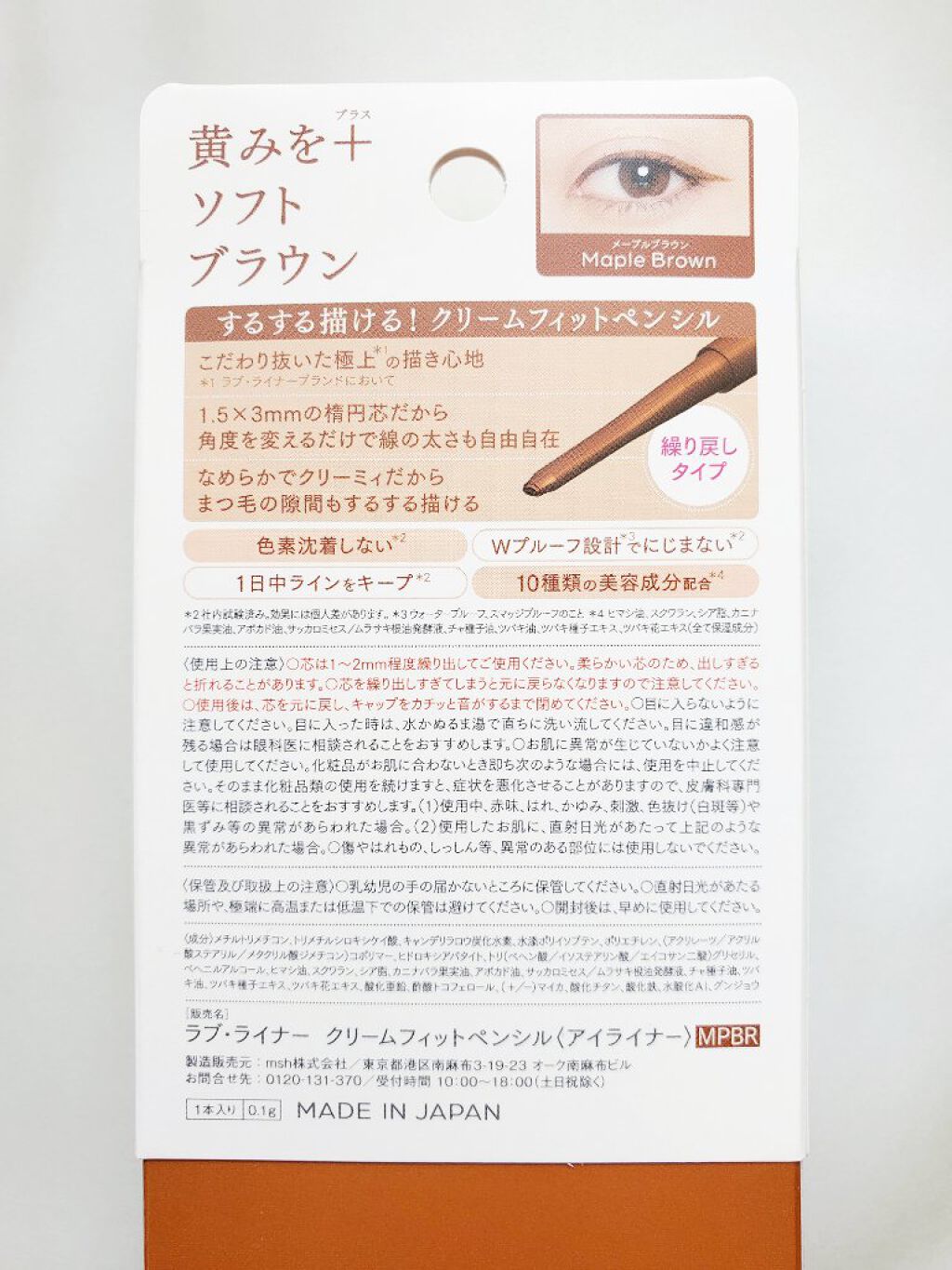 - 肌あたりがまるでクリーム。するする描けて一日中崩れない。※1 ■長さと重さを付けた新形状の繰り戻し可能容器で、手ブレしにくく描きやすさアップ。 ■ドロースムース設計で密着成分と揮発成分が顔料を包み、なめらかな描き心地を実現。 ■汗・皮脂・涙・こすれに強いWプルーフ設計。 ■美容成分※2 を5種類から10種類にアップ。 ※1 社内試験済。効果には個人差があります。 ※2 保湿成分のこと <カラー展開> ■ミディアムブラウン 陰影のある目元を作る黄み寄りのビターなブラウン。洗練された大人の存在感を。 ■アッシュブラウン ほんのり赤み系ブラウンでふわっと自然な抜け感。ほの甘く、柔らかな表情に。 ■ロージィブラウン 華やかで印象的なくすみピンクブラウンで血色感のある目元に。 ■メープルブラウン オレンジ系ブラウンの透け感ラインで、目元にピュアな明るさを。 \2023.9 new/ ■ブラック 目元をくっきり強調する洗練カラー。