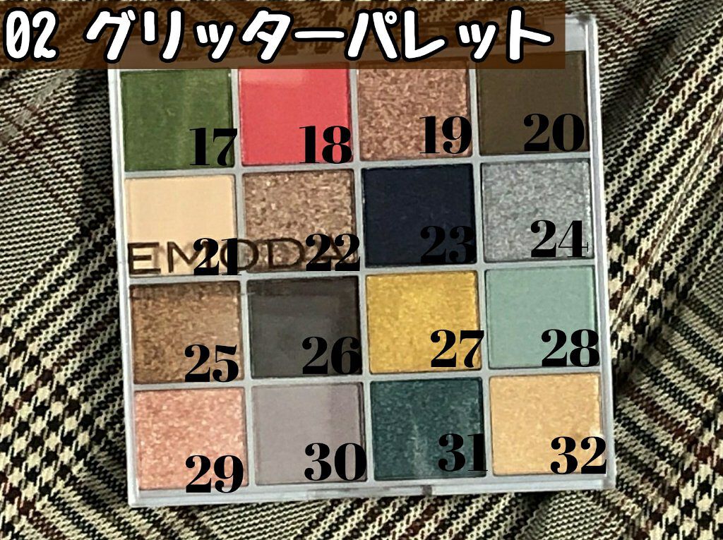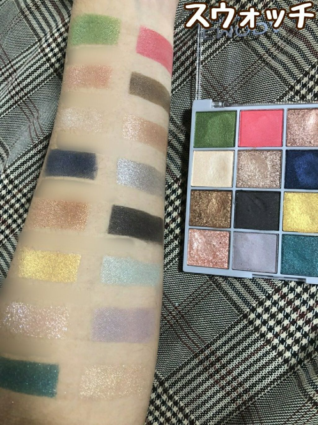 マットパレット16色グリッターパレット16色の計32色が900円くらいで買えちゃいました😳😳😳 マットは使いやすそうな色味も多いしいつも使わない色でも秋冬メイクに活躍しそう! キラキラ可愛いラメは腕にスウォッチしたので7枚目を見て貰えたらと思います!この6色は可愛いし早く目元に使いたい✨特に⑬としているものは多色ラメで角度が変わることでよりキラキラ🥺✨