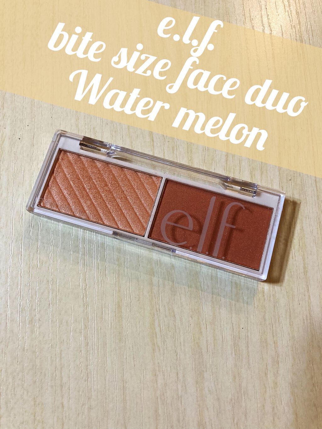 🍈e.l.fBite-SizeFaceDuo🍈アイハーブ🌿購入品👛チークとハイライトのセットです。カラーはWatermelon🍈パウダーはちょっと粉っぽい見た目でしたが、粉とびはせず肌にフィットしてくれます(о´∀`о)カラーもオレンジベージ...