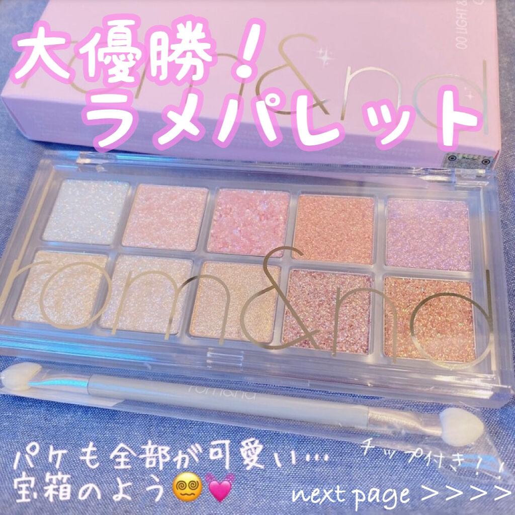 rom&ndベターザンパレット ♯01パンパースガーデン🤍🤍この前娘からもらって使ってるんだけど気に入ったのでレビュー投稿📝アイブロウまでいけちゃうこのパレットピンク系カラーは普通に可愛いんだけどラメがめちゃくちゃ可愛かった🐹❤️キランキラン...