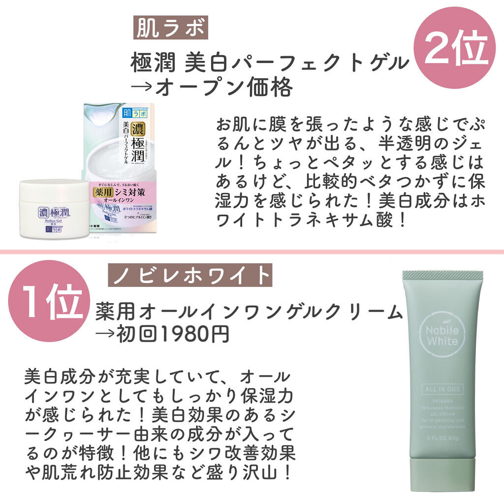 | オールインワン化粧品ランキング第10位 | 杏仁豆腐のようなぷるぷるテクスチャー♡伸びもよく保湿力も高いのにベタベタせず めちゃくちゃ使いやすい。 | 詳細を見る | |