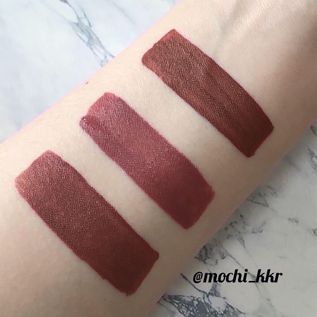 NARS パワーマットリップピグメント 2760 Slow Ride 自分には黄みを感じるのでオレンジブラウンの印象。少し赤みブラウンにも見えなくもないような… 2772 American woman 新品のものをお譲り頂いたのがきっかけで初めて使ったのがこの色。結果的に荒れることもなく気に入り他の2色を現品購入に至りました。 2780 Somebody to love スウォッチではパッと見2760と似ていても唇に塗ると全然違います。2772から更に青みを抜いた感じのローズブラウンです。