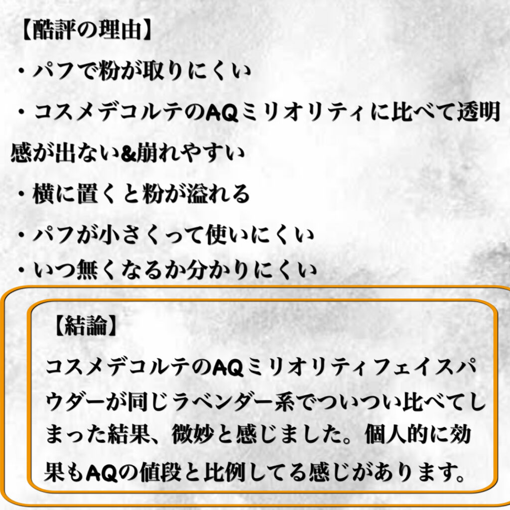 | フェイスパウダーランキング第20位 | サラサラで軽い付け心地だから、つけているのを忘れちゃうくらい🤭 | 詳細を見る | |