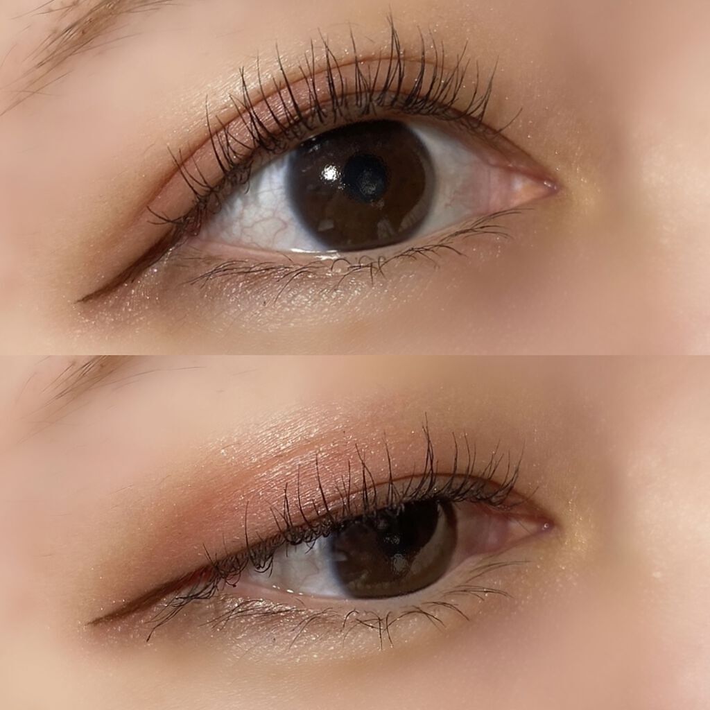 このメタリックマスカラは、コームが特殊! 極細のメタルコームで、0.45mm間隔の均一なピッチ。 程よく数本のまつ毛を束ねてくれて、綺麗な束になるの! コームは2.5mmとかなり細めなので、目頭や目尻が塗りやすいのはもちろん、下まつげも束が作りやすいの✨ 液がゆるめだから、重ね塗りしてもダマになりにくかったよ◎ 一度塗りだとわりと自然な仕上がりだから、重ね塗りして自分の好みの束感作ってみてね🫧 カールキープ力はしっかりあって、カールは落ちにくかった◎ 滲んだりとかもなかったよ! このマスカラの値段はなんと990円と1,000円以下なの…! この値段で綺麗な束感まつ毛が作れちゃうのすごすぎる〜!コスパ良い❤️🔥 現在は、クリアブラックのみがPLAZA・MINiPLAで先行販売です*̩̩̥ 1月からは全国的に販売されるよ🥰 クリアブラックに加えて、ブラウンも発売されるみたい!全2色展開! 限定のようなので、気になる方は売り切れちゃう前に要チェックだよ〜!!