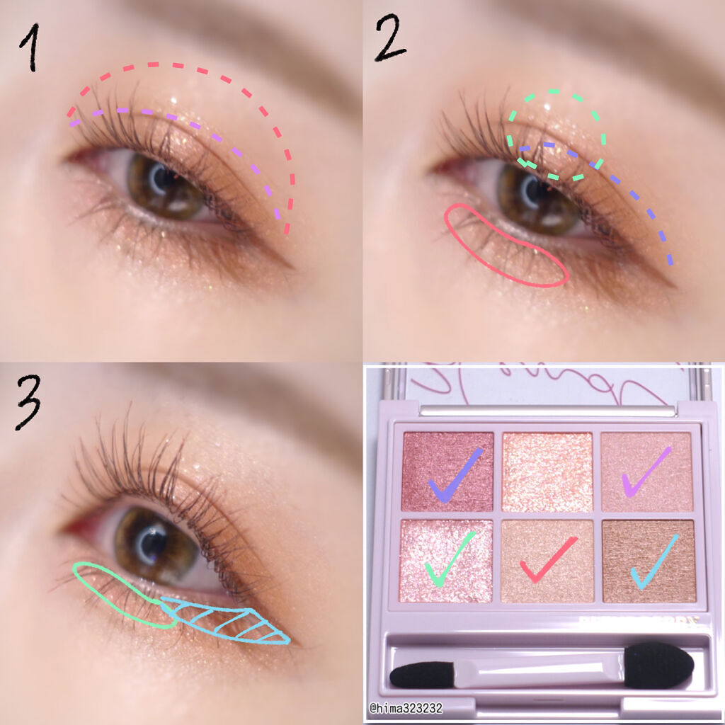 本日のアイシャドウ♡#BLENDBERRY#オーラクリエイション102ザクロ&シュガリーピンクどのカラーもめちゃくちゃ可愛いパレット❤️今日は、右下のブラウン系を二重幅まで。右下のラメピンクをまぶたへ。右上の赤みカラーを目尻へ締色として。真ん...