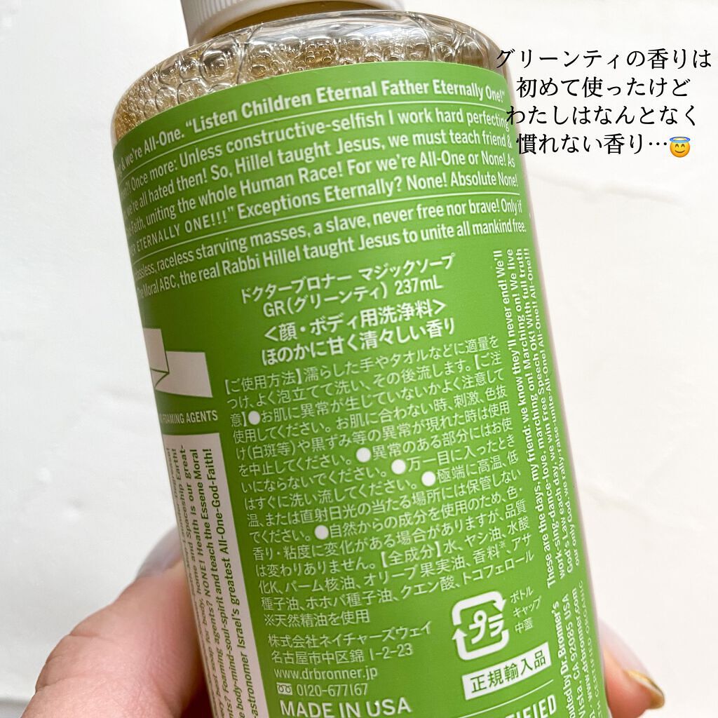 商品詳細情報ドクターブロナー マジックソープ グリーンティ