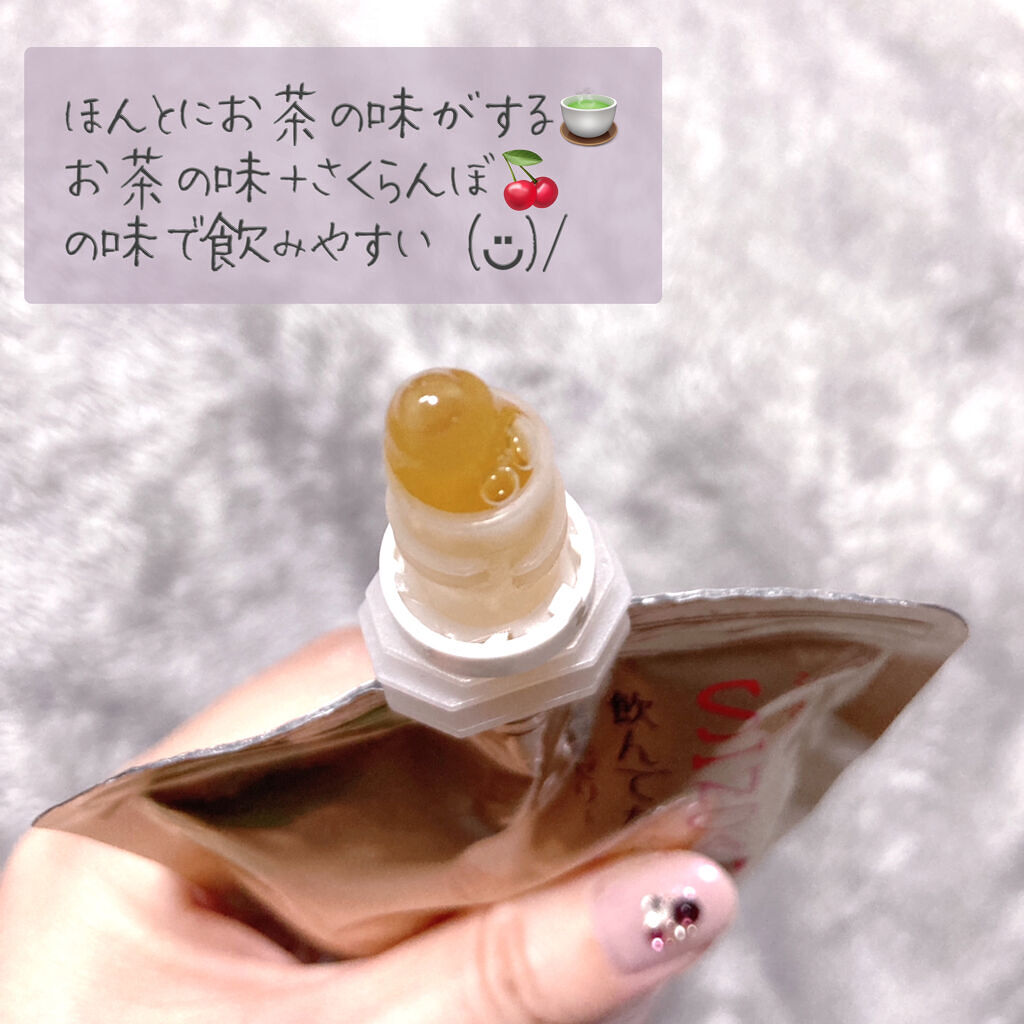 資生堂のさっぱり味の美容茶ゼリー!紅花エキス・サクランボ果汁・ハトムギエキス・ドクダミエキス・食物繊維・ビタミンCなどを配合したゼリー飲料だよ。 程よい甘さもありつつ、烏龍茶のような、紅茶のようなすっきりとした渋みも感じられてお茶のようにさっぱりと飲みやすい◎ ちゅるんとしたゼリーで喉通りもいいよ!インナーケアしたいけど、カプセルや錠剤が苦手でもゼリータイプなら飲みやすい。