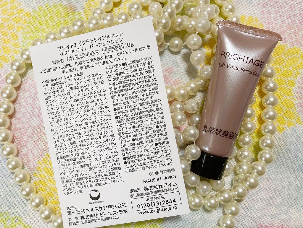 製薬会社である第一三共ヘルスケアが、研究と技術の粋を集めて開発したスキンケアシリーズで、リフトホワイトパーフェクションは、薬用有効成分である「トラネキサム酸」と「グリチルリチン酸2K」をWで配合し、様々な年齢肌悩みの根本原因にアプローチしてくれる商品となっています。 リフトホワイト パーフェクションは、ハリ、美白、高保湿にアプローチし、しっとりハリのある肌に導きます。コクのある美容液がとろけるように浸透し、化粧水の後これ1品でケアが完了する高保湿設計です。 高保湿設計なので、冬の乾燥対策にもなり、ハリへアプローチする成分がブライトエイジシリーズ中、最高濃度で配合されているので、年齢が気になる肌のハリアップが期待できます。