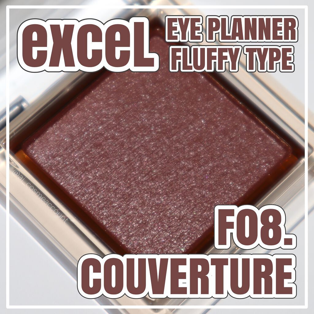 - 「エクセル アイプランナー S/R/F/D」は、質感の異なる4タイプのシングルアイシャドウです。 高輝度パールの“シャイニー”、ツヤ高発色の“リッチ”、新感触セミマットの“フラッフィ”、偏光パールMIXの“ダズル”から、様々な組み合わせをお楽しみいただけます。 単色使いはもちろん、重ねても美しく濁りのないクリアな発色。 フィットオイル*1を配合し、まぶたにピタッと密着して粉飛びやヨレを防ぎます。 集めたくなるシンプル&ミニマムなクリアコンパクトを採用。 色々なカラーやきらめきを自由に組み合わせて、毎日お気に入りの目元をプランニング。 アイメイクの幅が無限大に広がります。 *1 リンゴ酸ジイソステアリル(保湿成分)