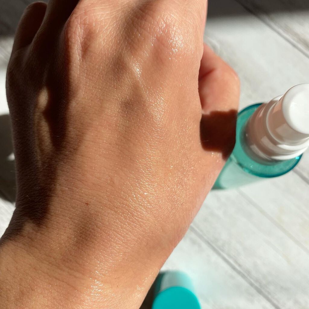 手に取ると、透明のさらっとした液体。 ですが、お肌に乗せるととろみとも違うのですがうすーい膜が張るような感じ✨ 肌馴染みが良くて、しっとりとしました🥰 まさに、水分とお肌が一体化するような感じです。 何の香りかはわかりませんが、心地よい香りがかすかにあります💕💕