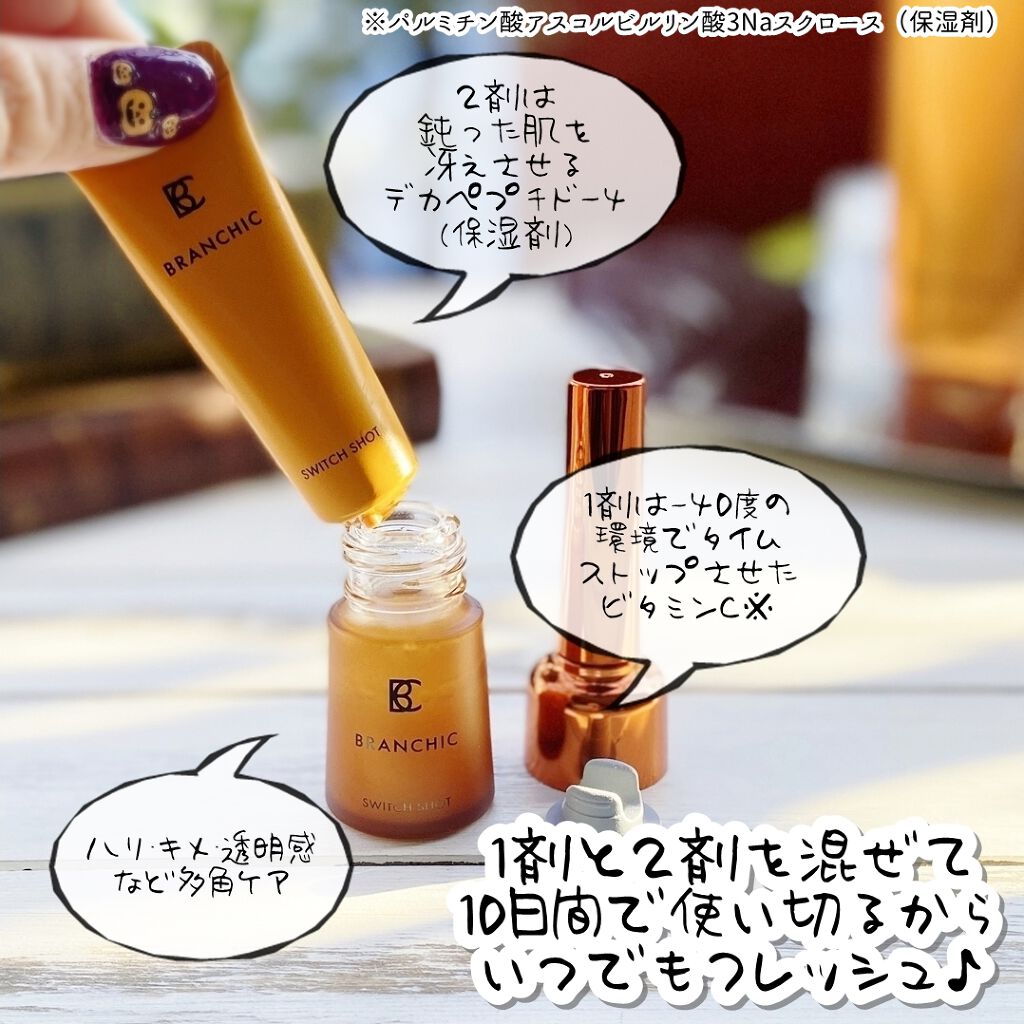 こちらはファンケルグループ初の高機能プレステージブランドとして2021年に誕生しBRANCHIC様の商品 ✧*。 新鮮さを保つために1剤と2剤を混ぜて使用するこちらの美容液 ✧*。乳白色のトロっとしたテスクチャーで伸びがよく 使用後のお肌はしっとりなめらかなお肌に◎ 1本で10日間使用できるので使い切るのが楽しみです♩