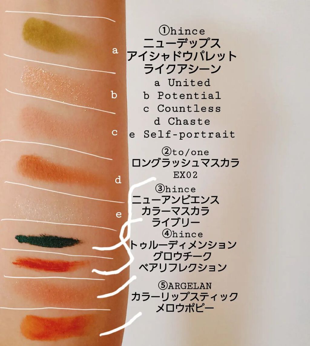 アイブロウは #WHOMEE の#レディモーヴ を使用! #hince の #ニューデップスアイシャドウパレット の a Lowkeyを上瞼全体に馴染ませる。 #rmk の#ザナウナウアイズ 02の #シークレットダスト を目頭に✨ #ヒンス の #ニューアンビエンスカラーマスカラ 上睫毛にブルーの#アンディファインド 下睫毛にオレンジ系の#ライブリー を。 #celvoke の #エンスロールマットリップス 03の テラコッタを💄💋