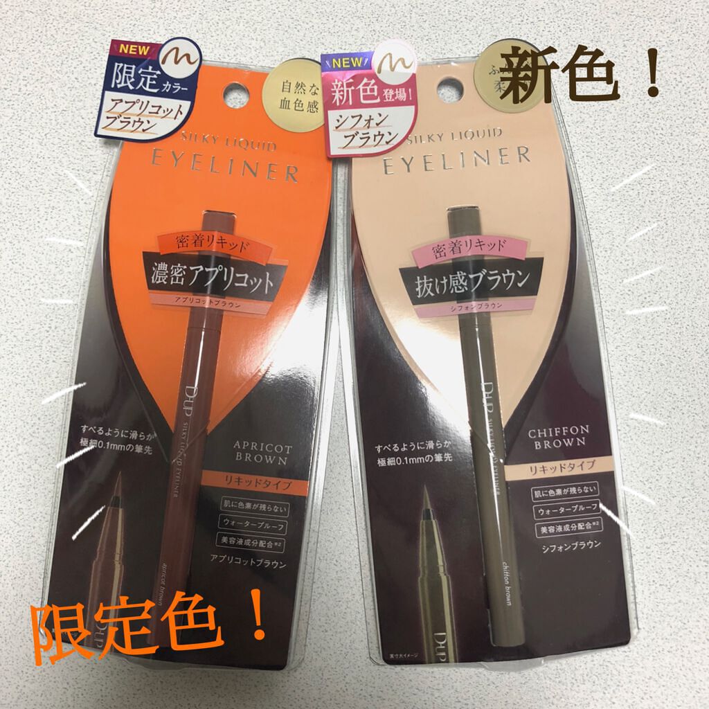 - 筆先までずっとなめらか、目尻で感動するリキッドアイライナー。 必要な量が肌にのる新設計で、まぶたの上をすべるような、滑らかな描き心地。しなやかでコシのある筆が、筆圧のコントロールを容易にし、太いラインも細いラインも思い通りに仕上げます。水、汗、涙に強いウォータープルーフタイプなのに、通常洗顔で簡単オフ。肌に色素が残らない顔料を使用。5種類の美容液成分を従来品の200%配合し、メイクしながら目元ケアまで。 ●ブラウンブラック ※2020年9月12日 バラエティショップ先行発売 ●漆黒ブラック ※2020年12月頃発売予定 ●ナチュラルブラウン ※2020年12月頃発売予定 ●シフォンブラウン 「毎日メイクに透明感と抜け感」 ブラウンでも、グレーでも、ベージュでもないニュアンスカラー。 自然な印影で素の目元を際立て、頑張りすぎない、ふんわりとした目元に。 ●アプリコットブラウン 「じゅわっと血色感。 肌に馴染むおしゃれカラー」 温かみのあるアプリコットがじゅわっと滲む血色感を目元に演出。 肌馴染みが良いので、カラーライナーに抵抗がある方もブラウンの延長線上で楽しめる、使いやすい色味です。 ”ちょっとオシャレ”な空気感を演出するカラー。 ●ピンクショコラ アイライナー 「ピンクが溶け込む濃厚ブラウン」 肌馴染みが良く、目元にじんわり血色感をプラス。 さりげなく女性らしさが加速するようなカラー。 ●ピスタチオラテ (2022年7月29日(金)発売) 「“目尻”に抜け感アクセント」 肌に馴染むのに映える絶妙なグリーン。 トレンドカラーに“くすみ”と“抜け感”をプラスしたまろやかな発色。 ●マスタードブラウン 「“イエロー”が揺れる、大人の洒落色」 (2022年7月29日(金)発売) まるで太陽のような暖かさを感じる新しいブラウン。 ほんのり感じるイエローでメイクが一気に垢抜ける稀有な色。 ●シフォンピンク(2023年2月10日発売) 「ふんわり柔らか"まろみピンク"」 甘くなりすぎない青みニュアンスで目元の透明感UP。 目元を引き締め、ピンクメイクにありがちな腫れぼったさを解消。 ●ミルクカプチーノ(2023年4月21日発売) まろやかな深みの“優しい締め色” どんなメイクにも合わせやすいカラー。 自然な陰影でさりげなく目幅を拡張します。 ●グレーカシミア(2023年10月1日発売) ブラウンがほんのり溶け込んだ、暖色グレー まろやかな発色で、パーソナルカラーを問わず肌に馴染む 目元の陰影になりすまし、抜け感と目力を欲張りに叶える ●ダークフィグ(2024年6月1日発売) するする”なめらか。描きやすいのに、落ちにくい。 クッキリ可愛いほの甘ダークブラウン ●ピーチモカ(2024年8月1日発売) ふわっと自然に盛れる“桃色ブラウン” ほんのり血色感で目元にうるみ感を演出 ●スターダストブラウン(2024年12月11日発売) キラッと繊細に輝く''星屑ブラウン'' 透け感のあるダークブラウンの色味とラメの輝きが、目元に艶のある立体感を演出 ●チャコールモカ(2025年4月10日発売) 目元を締める''深みグレージュ'' 黄みや赤みに偏りすぎない絶妙な色設計で、自然に目元を強調
