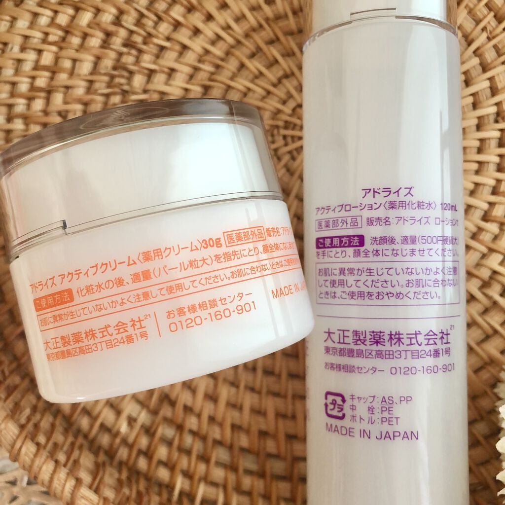 大正製薬がこだわりぬいた アドライズ保湿シリーズのうちの1つ アクティブローション。 シャバシャバ系でつけたあとはベタつかず、サラッとします。肌馴染みがよくしっとりするけど、私は部分的に乾燥が酷いので、もう少ししっとりした使い心地の方が好きかも。 無香料なので匂いに敏感な方、サラッとした使い心地が好きな方は使いやすいかも!