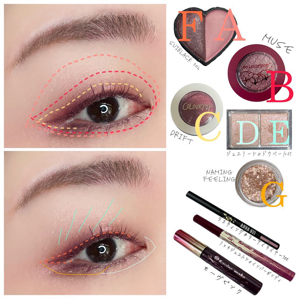ホワイトが効いたピンクに、赤みの強いピンク、しっかりとした締め色が入ってるからまぶたが腫れぼったくならないのもありがたい🥺💞 贅沢なキラツヤ感のあるラメやパールで大人っぽいピンクメイクが出来るよ💗💗