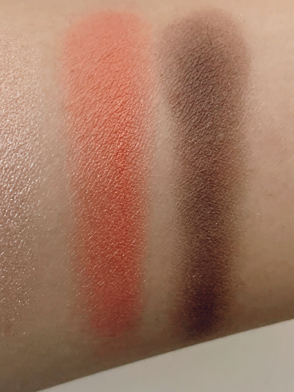 最近アイシャドウはマット系を使っていて久しぶりにパール系を使いました。今回は左下の赤紫?を二重幅に使いました。淡く優しめのカラーでパール感も控えめでよかったです(人´∀`*) 個人的に左上の青みカラーの艶感がとても綺麗で気に入りました(人´∀`*)
