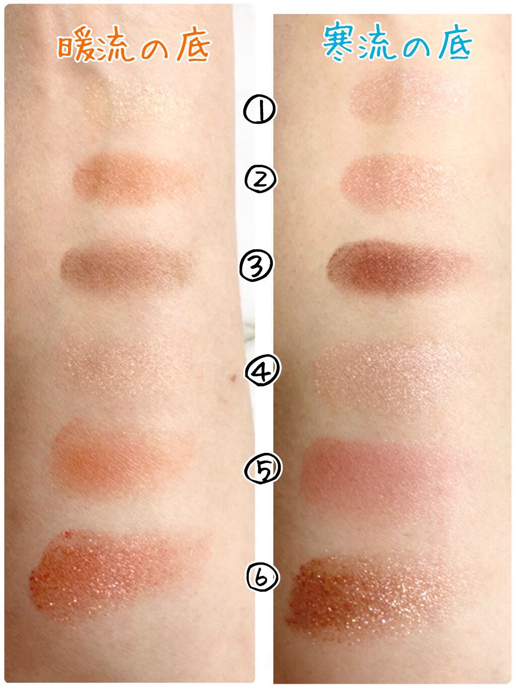 私の持ってるブラウンコレクションを薄いものから濃い色になるようにスウォッチをしてみました👀✨ 黄みより→カッコ良い感じ赤みより→血色感ある感じ たぶん誰にでも似合うブラウンかと思います!どの色を使ってもどっちの方が似合うとか、肌の色がくすむとかそういうことはありませんでした✨️