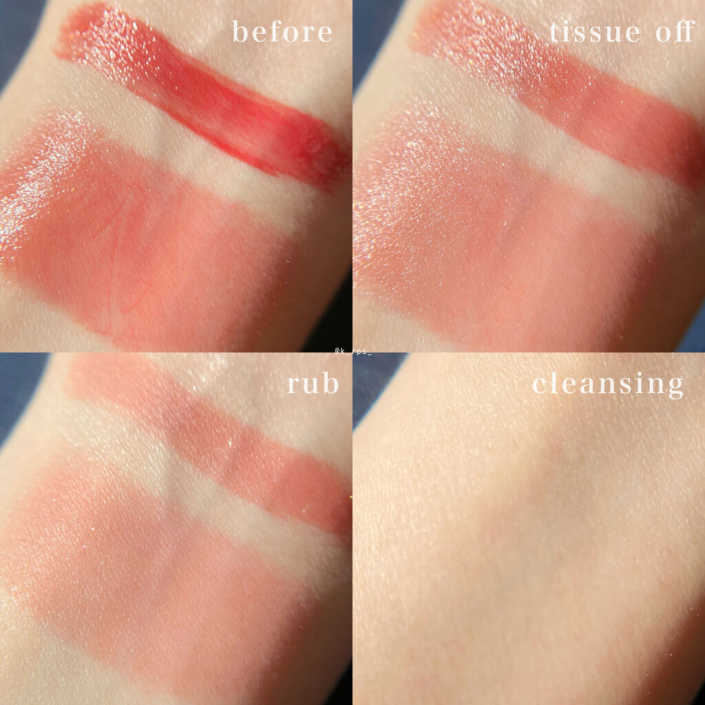 - 軽いオイルテクスチャーでべたつかず色移りが少ない、照り輝くパールコーティングティント。 グリッターパールがぶっくりした唇を、ローズヒップオイルやオリーブオイルやアボカドオイルなどがうるっとした唇を演出。
