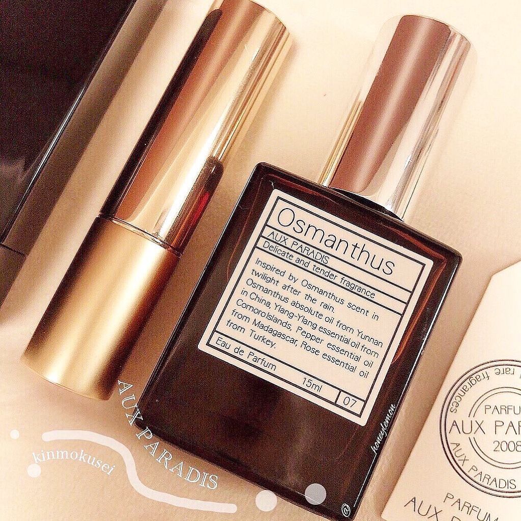 【金木犀で秋の準備🍂のAUXPARADISのオードパルファン】産地のわかる天然香料と上品で深みある香りが魅力的なオウパラディのオードパルファム!秋限定のオスマンサスは濃厚ながらもふんわりと甘く上品な香りがたまらない…♡AUXPARADIS(オ...