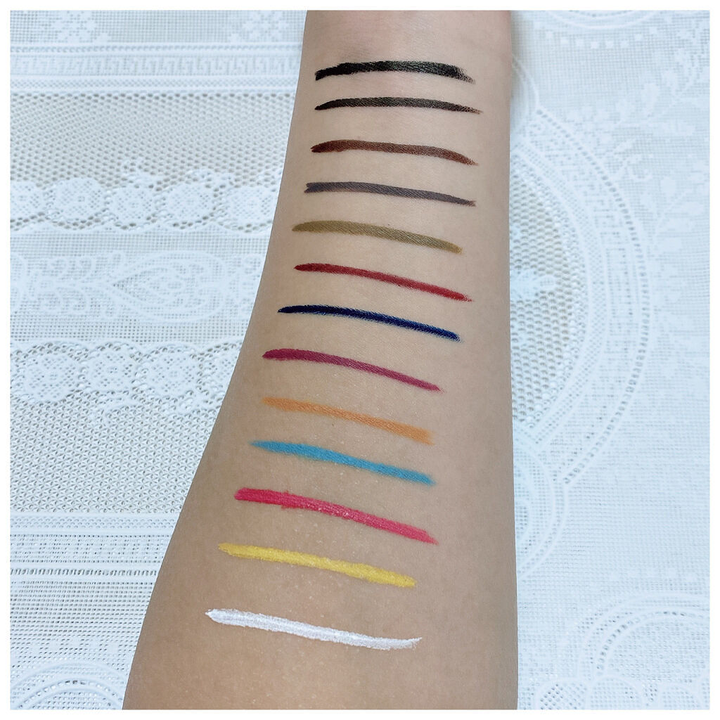 本体の程よい重さと少し太めの筆でとっても描きやすいアイライナーです✨ 汗をかいても泣いても滲まず取れない!1日中キープしてくれます カラーバリエーションも豊富で無難で使いやすい色から、ポイントメイクにピッタリな色がそろっています💕 ついつい頼ってしまうアイライナーです🎀