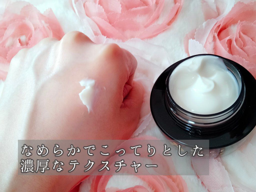| テクスチャーはとろみのあるリッチなクリームで、肌にのせるととろけるように広がります。 | 詳細を見る | ||