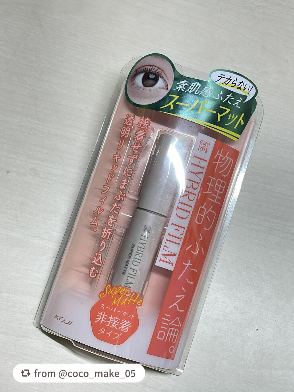 バレないテカらない皮膜式二重のりアイトークハイブリッドフィルムスーパーマット非接着タイプの二重のりで乾くとスーパーマット!アイシャドウの上から塗ってもテカらず目立たないからとっても自然な仕上がり🌟#コージー本舗#コージー#koji#アイト...