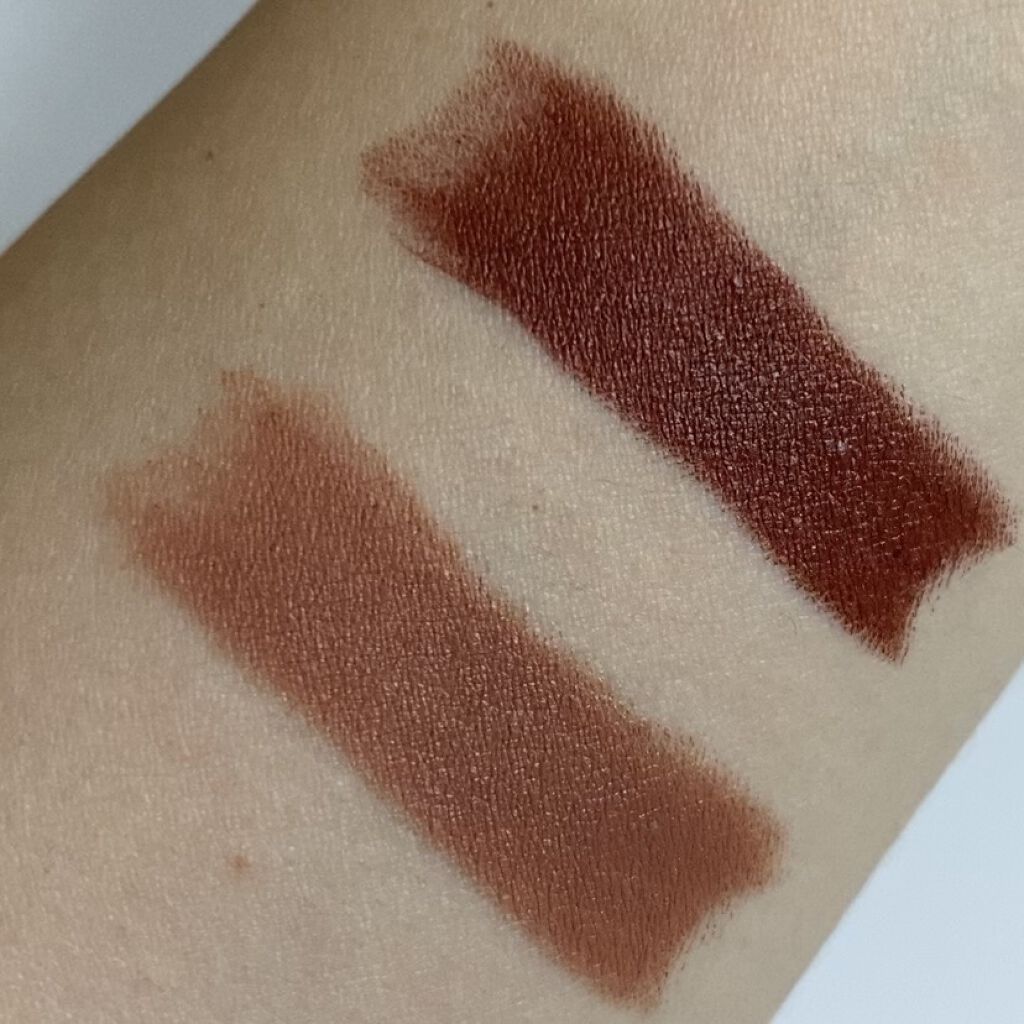 久しぶりに手に出してみると、やはりしっかりとした発色。 透け感はなく、マットな仕上がり。質感は柔らかくふわっとしたテクスチャー。 SUQQUってマットカラーの色味が絶妙ですよね😳 素敵な色が多く、惹かれる色味。 色持ちはいい◎ メイク落としシートで拭いても落ちない。