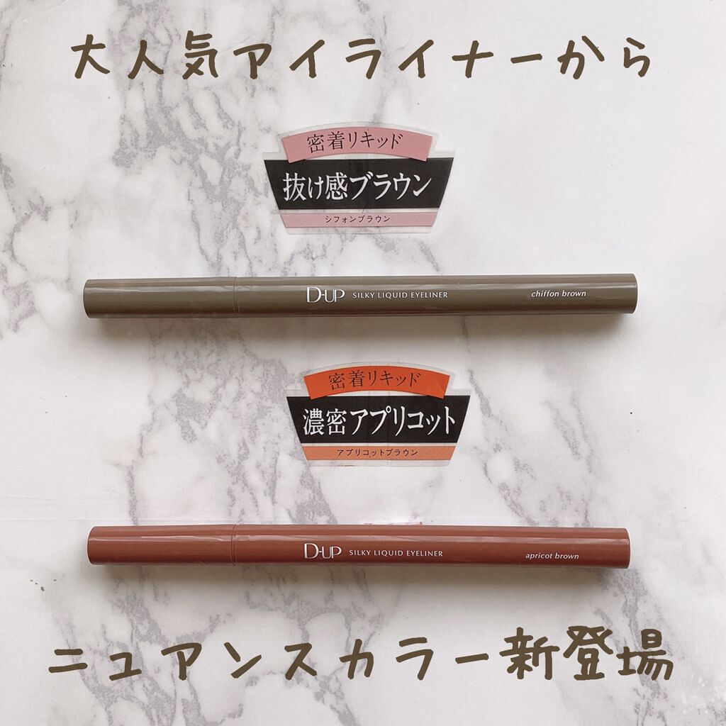 D-UPと言ったら目元コスメの王道ブランド👑 アイライナーはかなりのカラー展開がされていてその日の気分で目元も簡単にイメチェンができちゃいます🩷 発色が良くてこすれや水に強いのでここぞと言う時に大活躍🌟 定番のダークブラウンにあたたかな甘みをプラスし今っぽくアップデートした完熟いちじくブラウン❤︎