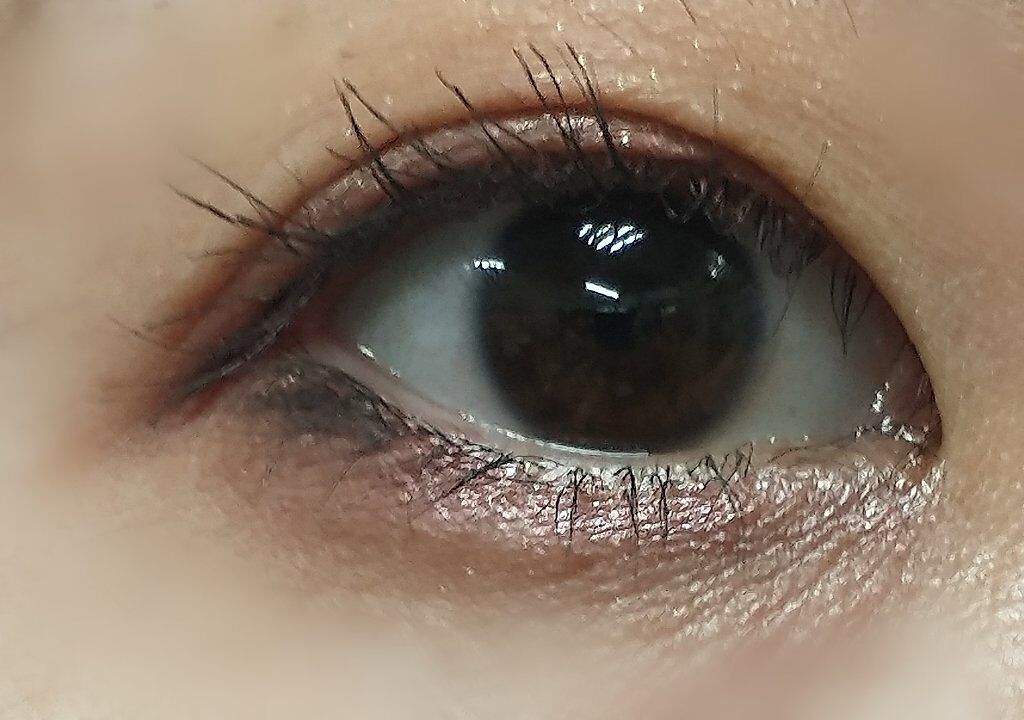 アイメイク半顔比較丸目に見せるかわいい系アイシャドウの塗り方CLIOプロアイパレットエアー10シーズンプラム上まぶたmakeベースカラーをアイホールと下まぶた全体にトントン塗り⇽こうすることでベースが綺麗に乗る!丸目に見えるように目頭と目尻に...