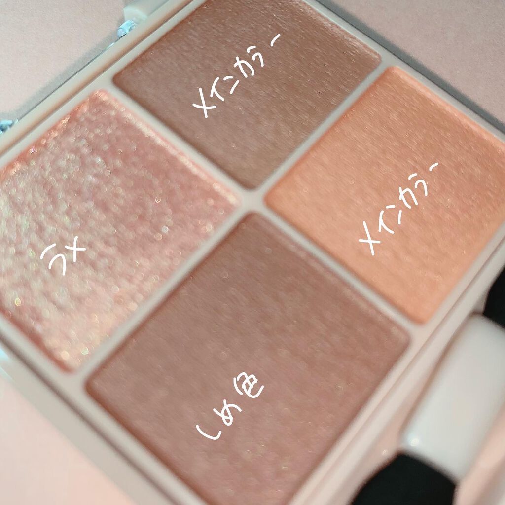 - シルキースフレアイズの姉妹品♡ 肌に溶け込むような透けマットシャドウ 透け感のある柔らかい仕上がりになるマット3色と、透け発色の繊細ラメ1色のパレットシャドウ♡ 完全マットアイや、ラメ×マットアイなど、メイクのパターンを楽しみましょう!