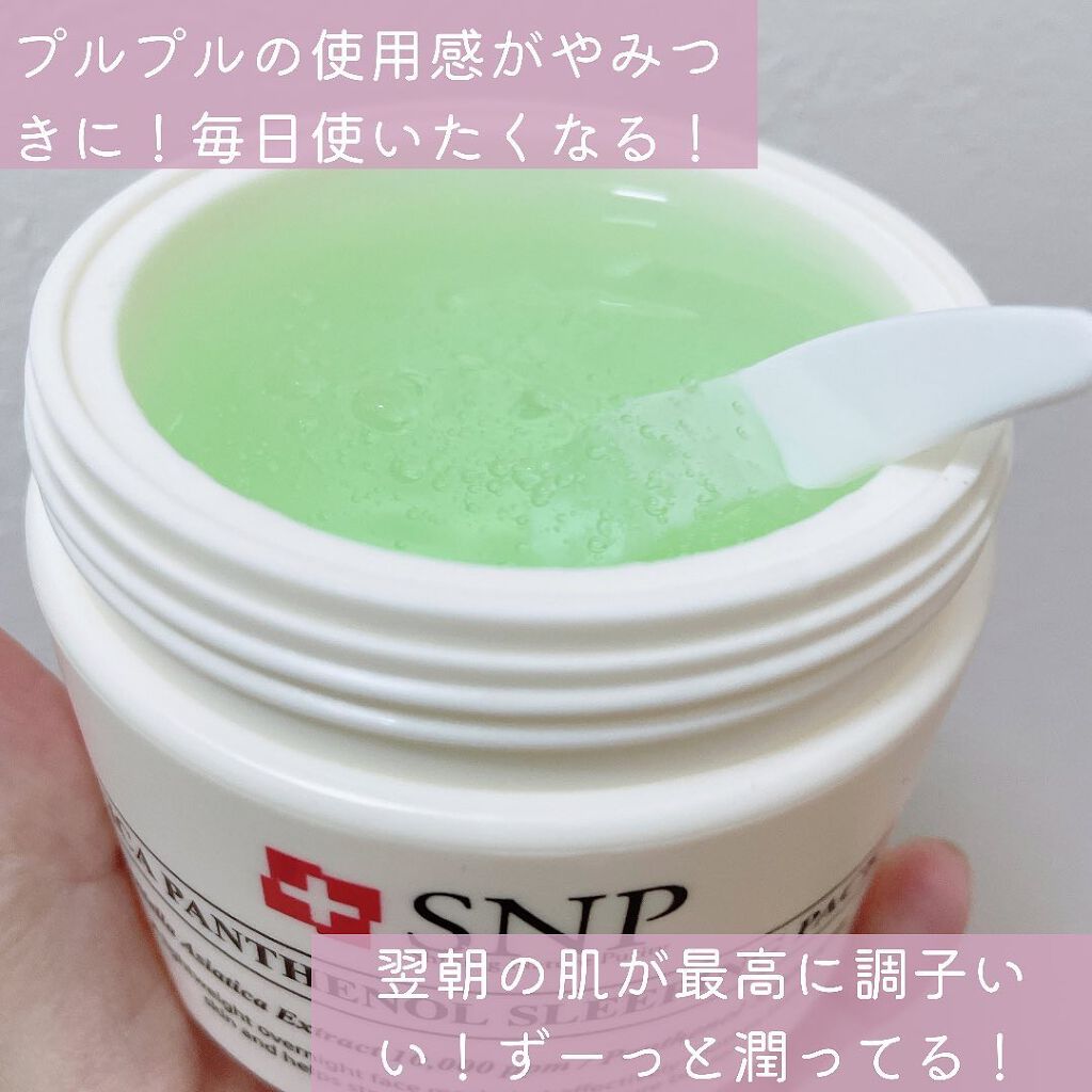 スリーピングパック自体はプルプルテクスチャ。 少し多めに肌に乗せる。 ミントのような、ラベンダーのような香り。 ラベンダーの香りが好きなので毎回、癒された。 保湿力たっぷりテクスチャが少し時間をかけて、スっとなじむ。 寝る時には、ベタベタしない。