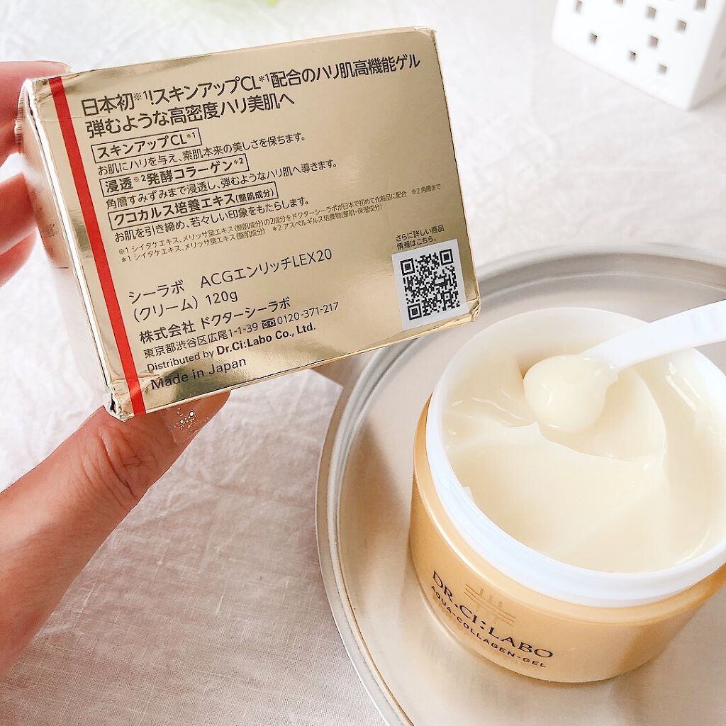 - 「スキンアップCL*1」や発酵によってコラーゲンの美容効果を高めた「浸透※5発酵コラーゲン*2」、エネルギービタミン「ナイアシンアミド*3」を組み合わせ、“守る” “加える” “活性化”する日本初「トータルコラーゲンサイエンス※1」を採用。肌の内側にアプローチし、史上最高※2の高密度ハリ肌へと導きます。 新発想の高機能ゲル『アクアコラーゲンゲル エンリッチリフトEX』は、みずみずしいテクスチャーでベタつきなく、すばやく浸透※5。 美容のプロからも沢山のご評価をいただいております。 一人ひとりが最も輝ける史上最高※2のハリ肌へ導く高機能ゲルです。 ※1 2018年TPCマーケティングリサーチ㈱調べ「ドクターズコスメ企業別シェア」 ※2ドクターシーラボの独自処方として ※3 シーラボ ACGエンリッチリフト史上 ※4 シイタケエキス、メリッサ葉エキス(整肌成分)の2成分をドクターシーラボが日本で初めて化粧品に配合 ※5 角層まで *1 シイタケエキス、メリッサ葉エキス(整肌成分) *2 アスペルギルス培養物(整肌・保湿成分) *3 整肌成分