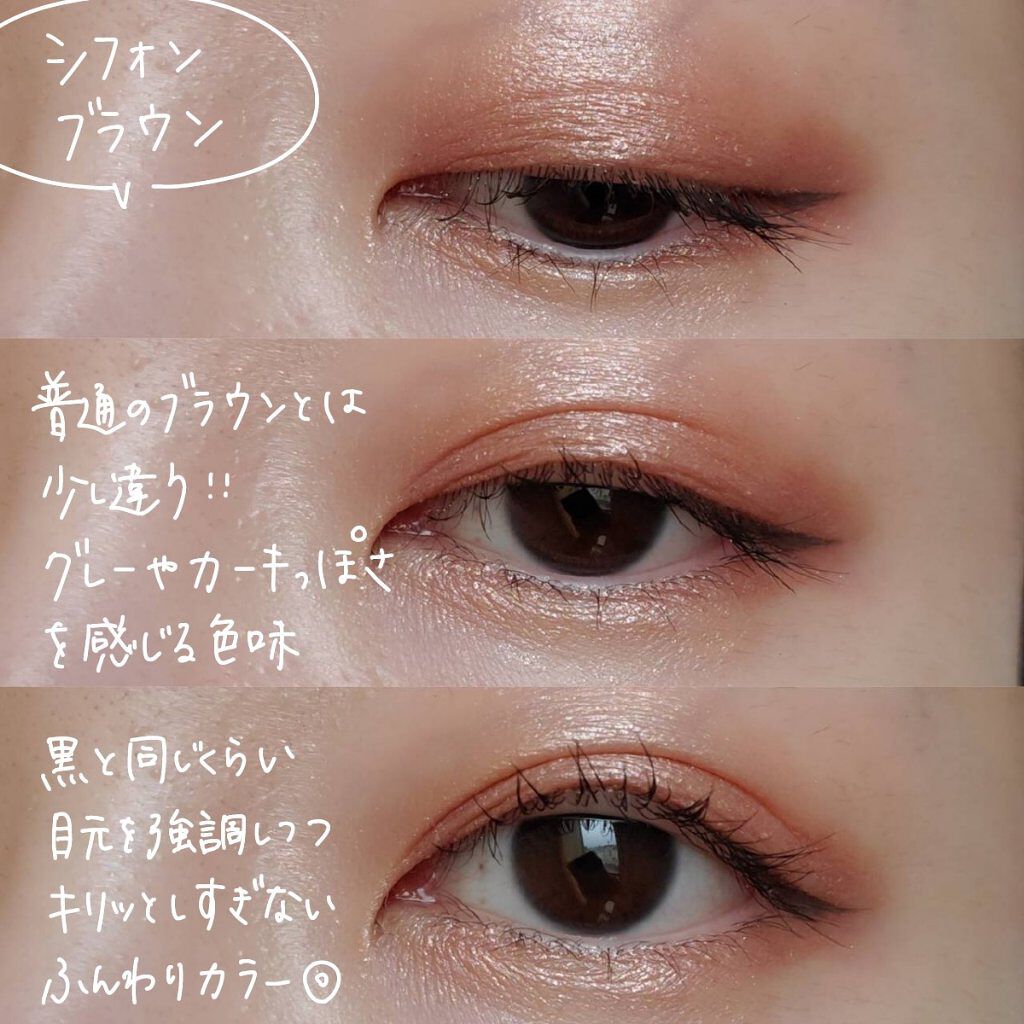 - 筆先までずっとなめらか、目尻で感動するリキッドアイライナー。 必要な量が肌にのる新設計で、まぶたの上をすべるような、滑らかな描き心地。しなやかでコシのある筆が、筆圧のコントロールを容易にし、太いラインも細いラインも思い通りに仕上げます。水、汗、涙に強いウォータープルーフタイプなのに、通常洗顔で簡単オフ。肌に色素が残らない顔料を使用。5種類の美容液成分を従来品の200%配合し、メイクしながら目元ケアまで。 ●ブラウンブラック ※2020年9月12日 バラエティショップ先行発売 ●漆黒ブラック ※2020年12月頃発売予定 ●ナチュラルブラウン ※2020年12月頃発売予定 ●シフォンブラウン 「毎日メイクに透明感と抜け感」 ブラウンでも、グレーでも、ベージュでもないニュアンスカラー。 自然な印影で素の目元を際立て、頑張りすぎない、ふんわりとした目元に。 ●アプリコットブラウン 「じゅわっと血色感。 肌に馴染むおしゃれカラー」 温かみのあるアプリコットがじゅわっと滲む血色感を目元に演出。 肌馴染みが良いので、カラーライナーに抵抗がある方もブラウンの延長線上で楽しめる、使いやすい色味です。 ”ちょっとオシャレ”な空気感を演出するカラー。 ●ピンクショコラ アイライナー 「ピンクが溶け込む濃厚ブラウン」 肌馴染みが良く、目元にじんわり血色感をプラス。 さりげなく女性らしさが加速するようなカラー。 ●ピスタチオラテ (2022年7月29日(金)発売) 「“目尻”に抜け感アクセント」 肌に馴染むのに映える絶妙なグリーン。 トレンドカラーに“くすみ”と“抜け感”をプラスしたまろやかな発色。 ●マスタードブラウン 「“イエロー”が揺れる、大人の洒落色」 (2022年7月29日(金)発売) まるで太陽のような暖かさを感じる新しいブラウン。 ほんのり感じるイエローでメイクが一気に垢抜ける稀有な色。 ●シフォンピンク(2023年2月10日発売) 「ふんわり柔らか"まろみピンク"」 甘くなりすぎない青みニュアンスで目元の透明感UP。 目元を引き締め、ピンクメイクにありがちな腫れぼったさを解消。 ●ミルクカプチーノ(2023年4月21日発売) まろやかな深みの“優しい締め色” どんなメイクにも合わせやすいカラー。 自然な陰影でさりげなく目幅を拡張します。 ●グレーカシミア(2023年10月1日発売) ブラウンがほんのり溶け込んだ、暖色グレー まろやかな発色で、パーソナルカラーを問わず肌に馴染む 目元の陰影になりすまし、抜け感と目力を欲張りに叶える ●ダークフィグ(2024年6月1日発売) するする”なめらか。描きやすいのに、落ちにくい。 クッキリ可愛いほの甘ダークブラウン ●ピーチモカ(2024年8月1日発売) ふわっと自然に盛れる“桃色ブラウン” ほんのり血色感で目元にうるみ感を演出 ●スターダストブラウン(2024年12月11日発売) キラッと繊細に輝く''星屑ブラウン'' 透け感のあるダークブラウンの色味とラメの輝きが、目元に艶のある立体感を演出 ●チャコールモカ(2025年4月10日発売) 目元を締める''深みグレージュ'' 黄みや赤みに偏りすぎない絶妙な色設計で、自然に目元を強調