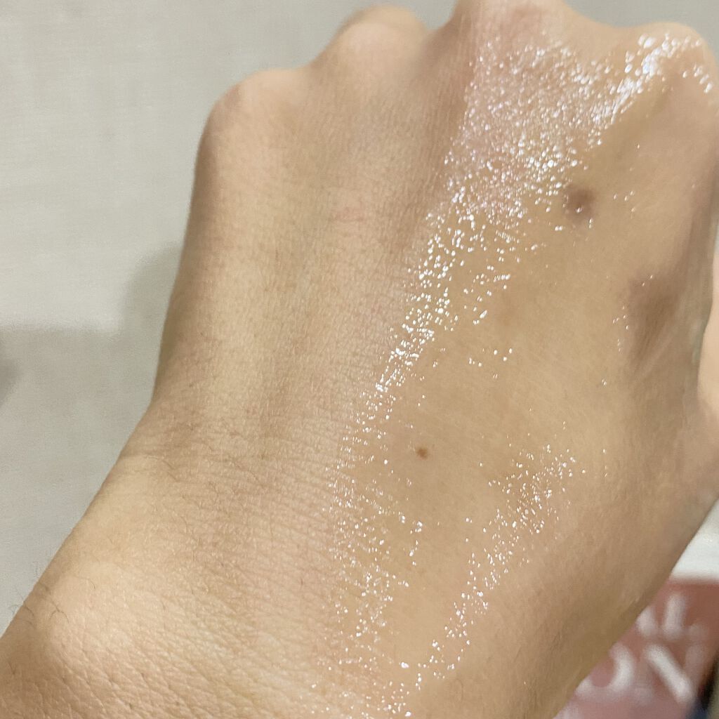 手に取ると、透明のさらっとした液体。 ですが、お肌に乗せるととろみとも違うのですがうすーい膜が張るような感じ✨ 肌馴染みが良くて、しっとりとしました🥰 まさに、水分とお肌が一体化するような感じです。 何の香りかはわかりませんが、心地よい香りがかすかにあります💕💕