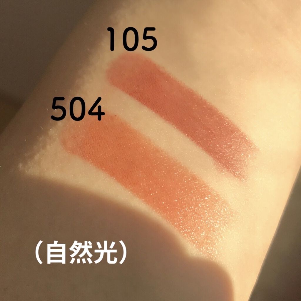 誰もが知るこのリップ、プチプラで有名ですが、一つだけ。それは… 「蛍光ピンク残り」です。 ティントなどでよくある、初めに塗った色が段々蛍光ピンクになってしまう現象です。 私は105番と504番を持っていますが、どちらも赤218を含んでいました。(どちらも色が可愛いが為に悔しい…) 個人的に504番の方が蛍光ピンクになりやすかったです。 これ以外の欠点は特にないので、リップ自体は使い続けると思います。