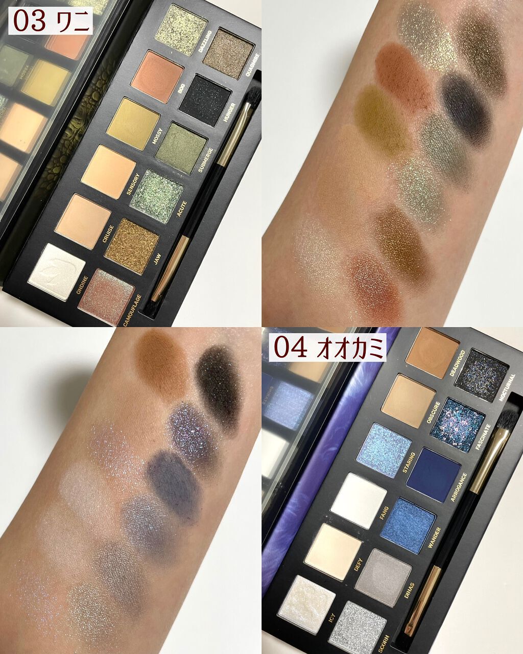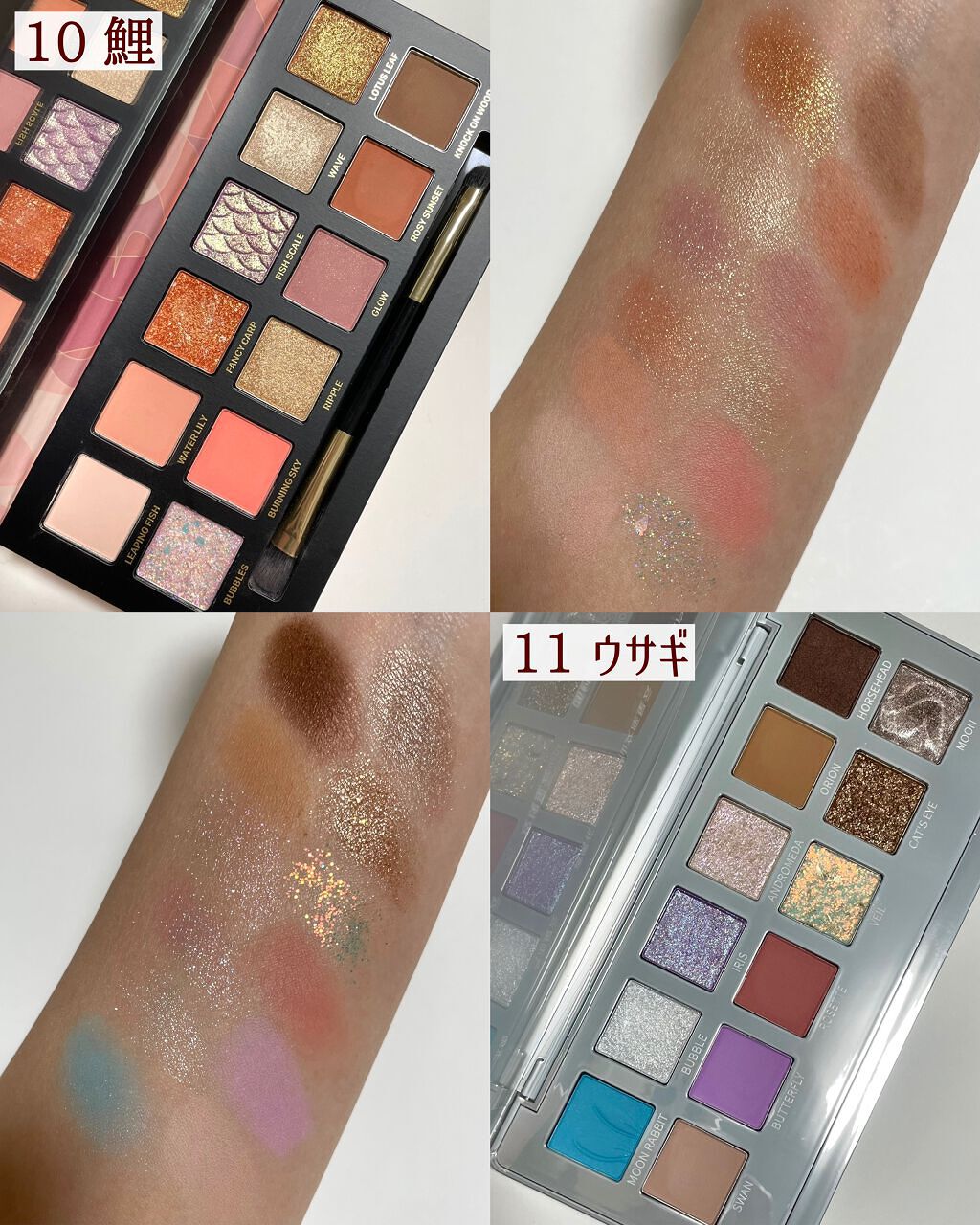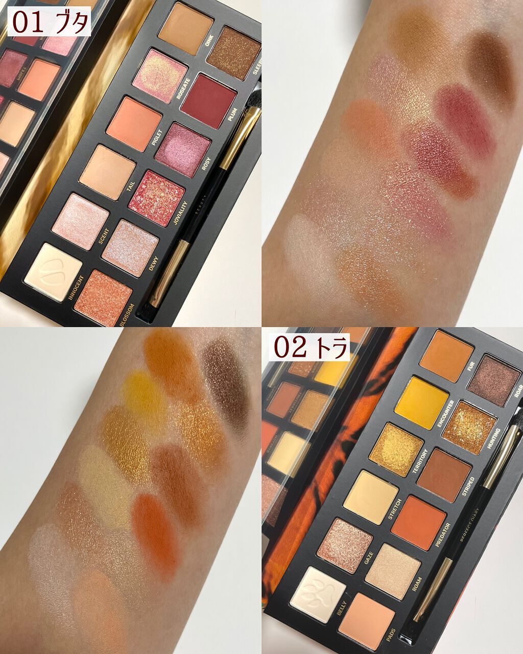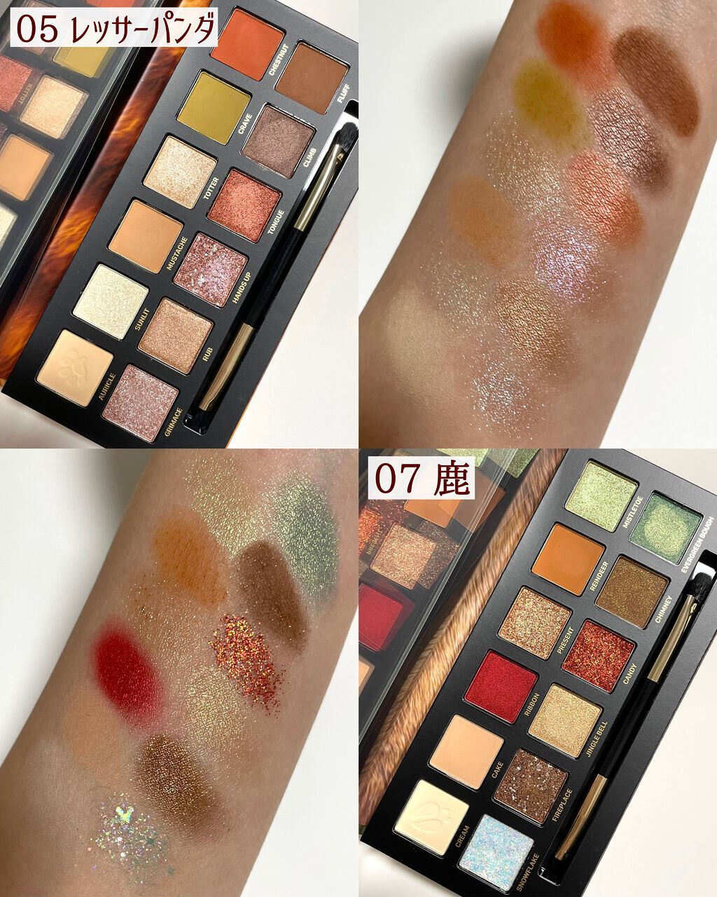 - #1.「SNSで話題になったシリーズ」 2021年のTmallで年間900万件の売り上げで、中国のSNSで超話題になりました。 #2.「4種類粉感」 滑らかマット、キラキララメ、モチモチベース状、ラメがついているマット色、多彩なカラーの組み合わせ、きめ細かい質感、肌に高密着で長持ち。 <虎> 虎からインスピレーションを受けたアニマルアイシャドウパレット。力強く活発なオレンジ・ゴールドをメインに、滑らかマット、キラキラグリッターなど多彩なテクスチャーとカラーの組合せで思い通りのメイクが完成。 <パンダ> ふんわりパンダのようなベージュ・ベビーピンクカラーや、パンダが住む竹林を表現したグリーンカラー。自由で愛らしいパンダからインスピレーションを受けたパレットで、かわいらしい印象も大人っぽい印象も1枚で叶える。 <猫> 猫からインスピレーションを受けたアニマルアイシャドウパレット。上品で落ち着いたブラウンとミステリアスなピンクパールがポイント。滑らかマット、キラキラグリッターなど多彩なテクスチャーとカラーの組合せで思い通りのメイクが完成。 <タンチョウ鶴> 鶴からインスピレーションを受けたアニマルアイシャドウパレット。使いやすいピンクベージュ系のカラーと鶴の頭をイメージした赤×白がインパクトを与える。滑らかマット、キラキラグリッターなど多彩なテクスチャーとカラーの組合せで思い通りのメイクが完成。 <赤狐> 赤狐からインスピレーションを受けたアニマルアイシャドウパレット。イエベ向きのオレンジブラウン系のカラーをメインに、滑らかマット、キラキラグリッターなど多彩なテクスチャーとカラーの組合せで思い通りのメイクが完成。狐のしっぽを再現したデザインもカワイイ。 <ラッキーラビット> うさぎからインスピレーションを受けたアニマルアイシャドウパレット。白うさぎのキュートさと透明感が再現できる赤・ピンク系の配色。滑らかマット、キラキラグリッターなど多彩なテクスチャーとカラーの組合せで思い通りのメイクが完成。 <虎&猫> 猫のしなやかさ、虎の眼光。一つのパレットで操る、二つの表情。 「猫と虎」にインスパイアされたデュアルアイメイク:「猫ルック」のしなやかな優しさ、「虎ルック」のクールな眼差し。気分に合わせて自由にスイッチ。 「ソフトブラウン × 繊細な煌めきで、優美なキャットアイを。」 「ディープスモーキー × シャープなラインで、力強いタイガーアイを。」 <オータムチェスナット> 秋の野を映し出す赤茶色と栗色のメイクで、秋冬ならではの温かみのあるカラースケールを演出。 ソフトマット、シマー、メタリックが交わり溶け合う、多彩な質感。濃厚さの中に軽やかさも。 単色でも、重ねても美しく。多様なスタイルを叶えます。