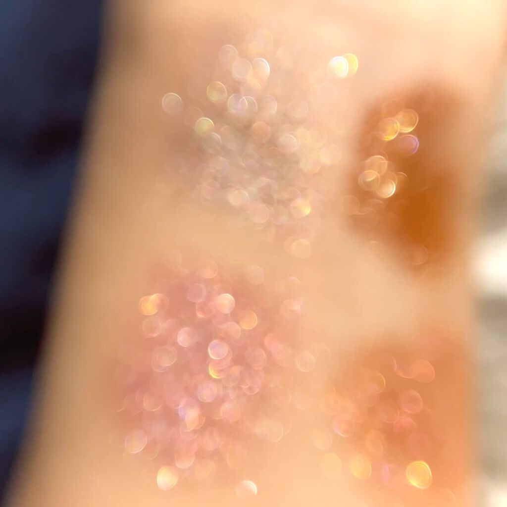 大粒の多色ラメ、パールがホリデーらしい華やかなパレット カラーヴェール、セミマット、メタリック、サテン、マットの5種類の質感で捨て色無さそうだなと個人的に思った! 下の段の1番左端のラメ感って韓国コスメにありそうな感じだけどmade in japanだった👌🏻 全体的には温かみのあるピンクやコーラルピンクもふくまれていてイエベの方にも使いやすいパレットだなと🥺