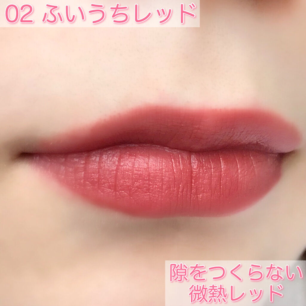 こちらは気になって購入しました。:°ஐ..♡* 3色の中で1番赤!って感じのカラーです。赤といってもプラム系のレッドでレッドとプラムを煮詰めたような深みのあるカラーです。 ほろ酔いピンクという名前の通りちょっと酔ってしまってナチュラルに唇が火照ってきた。みたいな血色感が自然ににじみ出るようなカラーです。 マットリップというより、スフレみたいな感じで同じくマットが苦手な僕でもつけやすかったです!可愛い☺️
