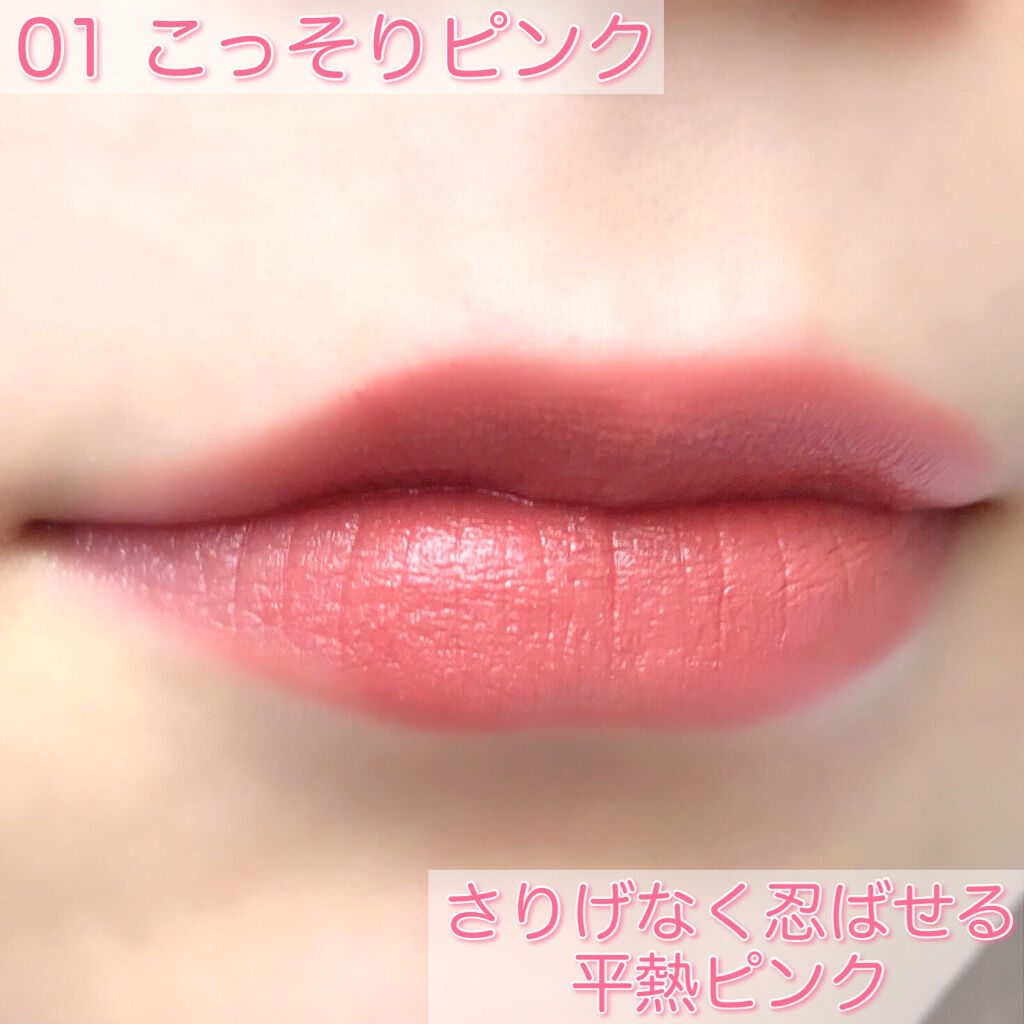 新色は大人かわいい上品な2つのカラー❤️ 06 #ピンクベージュ ナチュラルでどんな場面にも合うような万能なカラー✨ 上品な印象になる仕上がりです💖 07 #ビターレッド 深みのある大人っぽいカラー✨ 華やかな印象になる仕上がりです💖 01 #ナチュラルピンク 女性らしい華やかな印象になるピンク 02 #コーラルレッド 垢抜けたおしゃれな印象になるコーラルレッド 03 #ベージュブラウン 知的で大人っぽい印象になるベージュブラウン 04 #キャメルオレンジ こなれた印象になるオレンジ 05 #プラムレッド 洗練された印象になる青みレッド 色持ちも良くて、ティッシュオフするとマスクにもつきにくくておすすめリップです😊