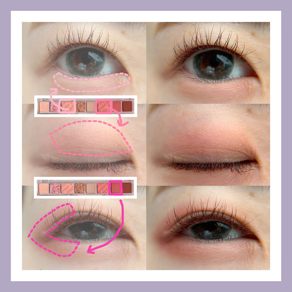 EGLIPSのリトルサンシャインはオレンジパレット界の王さまだと思っています👑 エクセルのピーチメルバは細かいラメがぎっしりで薄づきなので、ベースのすぐ後に全体に塗ってあげると一気に目がオレンジを受け入れられます🧡 最後にのせたBR416はゴールドとレッドのパールがすごく綺麗なので、ピーチメルバとの相性が抜群!