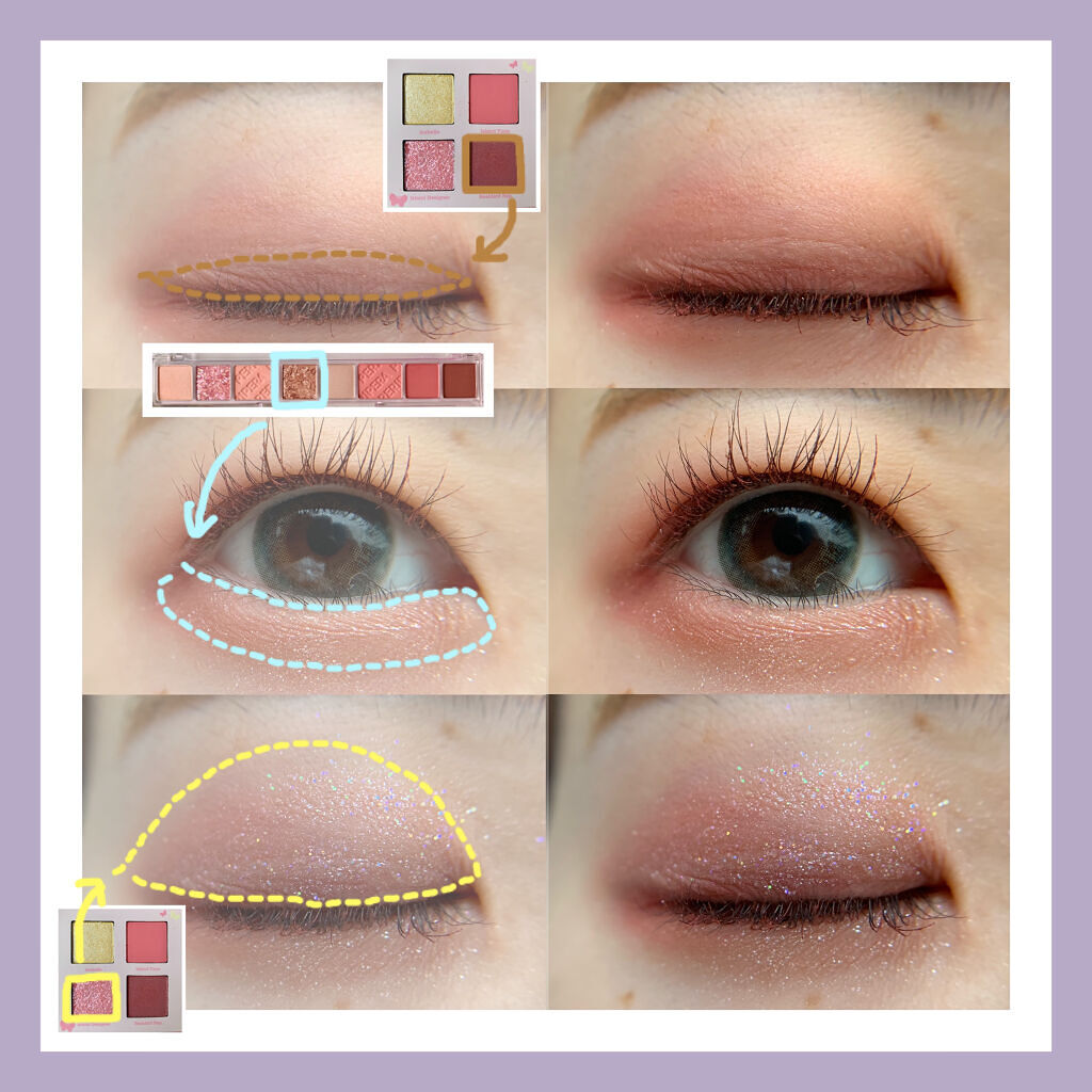 Heimishのはコーラル系、ピンク系、オレンジ系…基本的にどのカラーでも合わせやすいグリッターパレットで、おすすめです🌟 私はスタイルコリアンのセールで買いました!